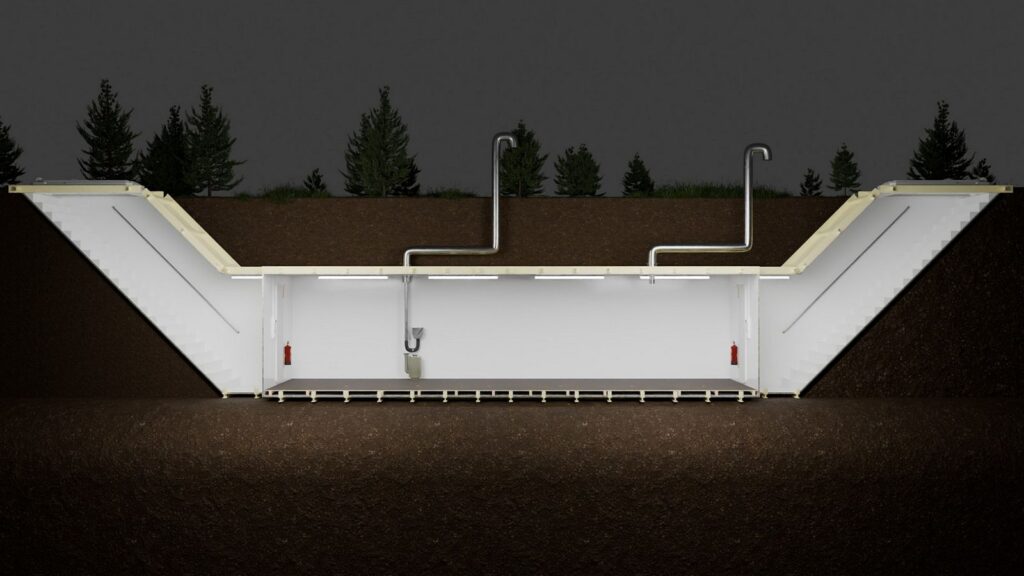 - Dwa wejścia, zapewniające szybki dostęp do schronu w razie potrzeby.