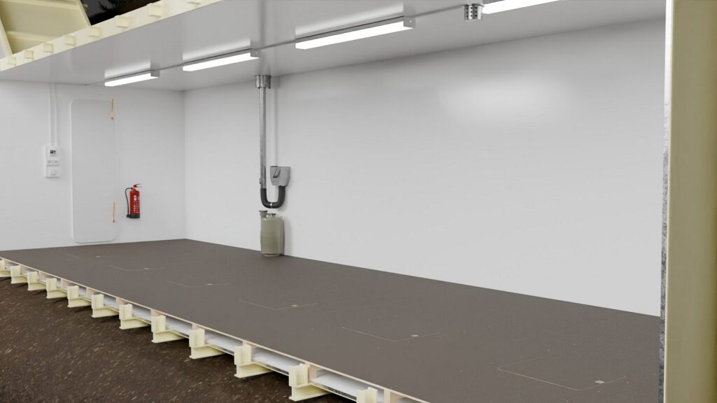 - Podwójna podłoga, zapewniająca dodatkową warstwę ochrony i izolacji.